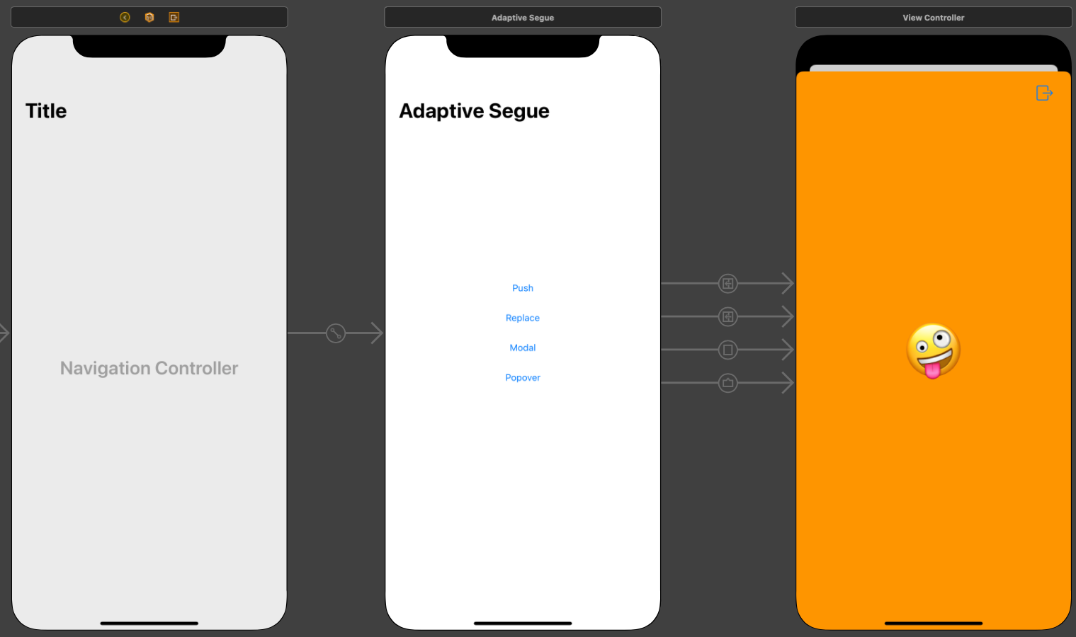 Cocoa Touch Framework는 4가지의 Adaptive Segue를 제공한다.