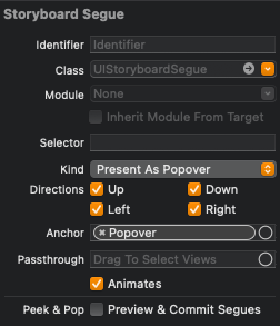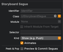 Segue의 Attribute에는 다양한 옵션이 제공된다.
