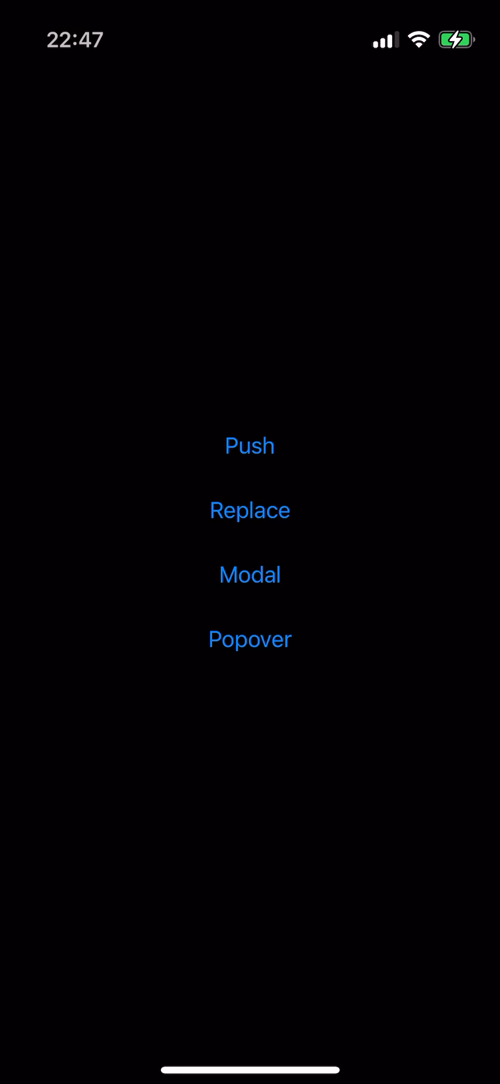 Push과 Replace는 새롭게 Push 방식으로 표시되고, 나머지는 모두 Modal로 표시된다.