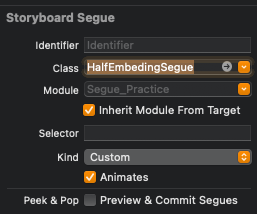 이 때는 UIStoryboardSegue를 SubClassing 해서 구현한다.