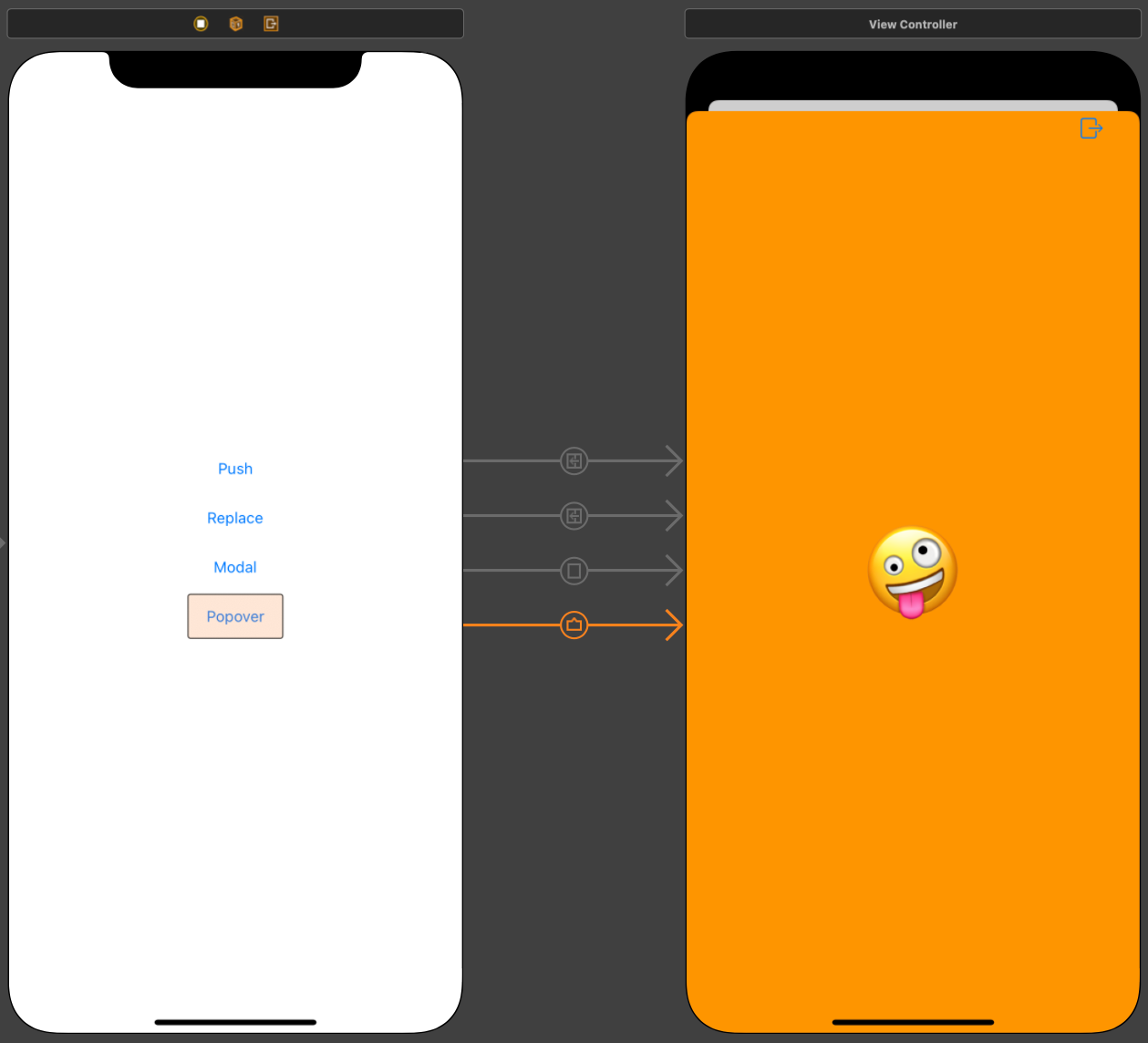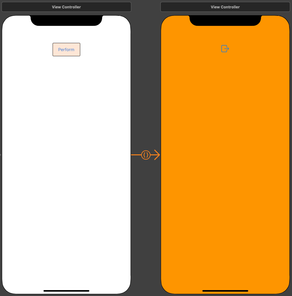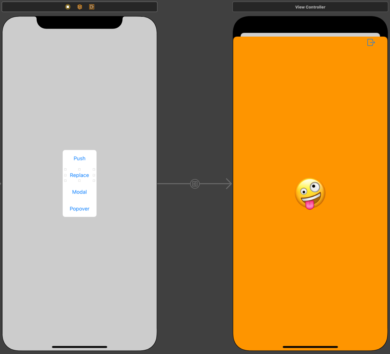 그리고 Segue의 중앙에는 종류를 나타내는 아이콘이 표시된다.