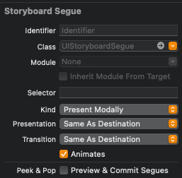 Segue의 Attribute에는 다양한 옵션이 제공된다.