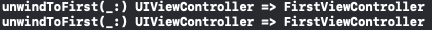 @IBAction func unwindToFirst(_ unwindSegue: UIStoryboardSegue) {