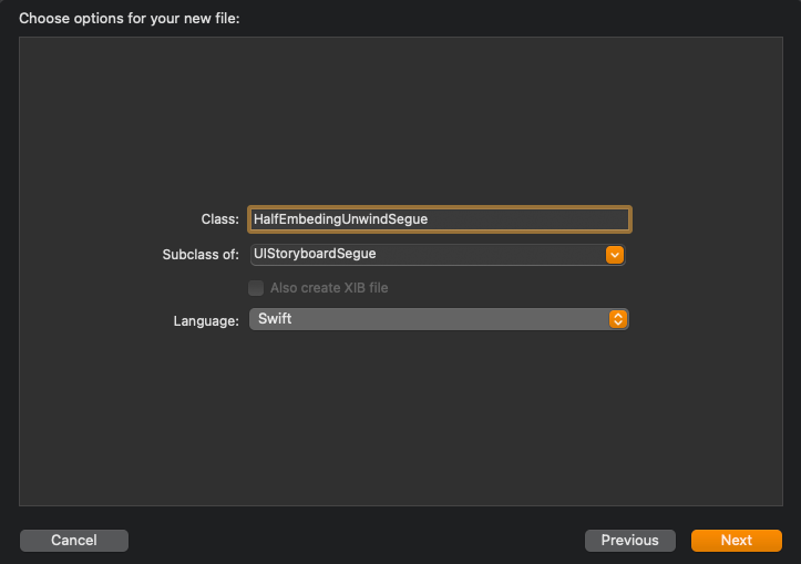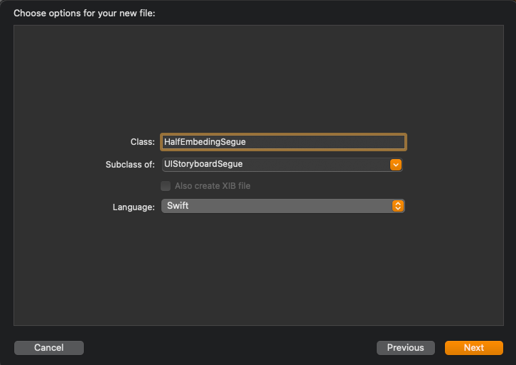 새 파일을 UIStoryboardSegue를 Subclass로 가진다.