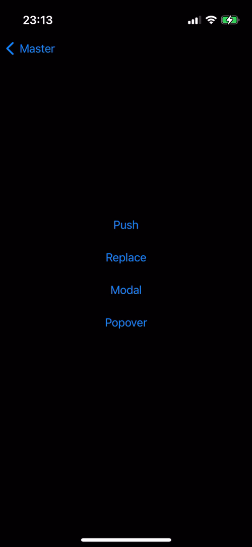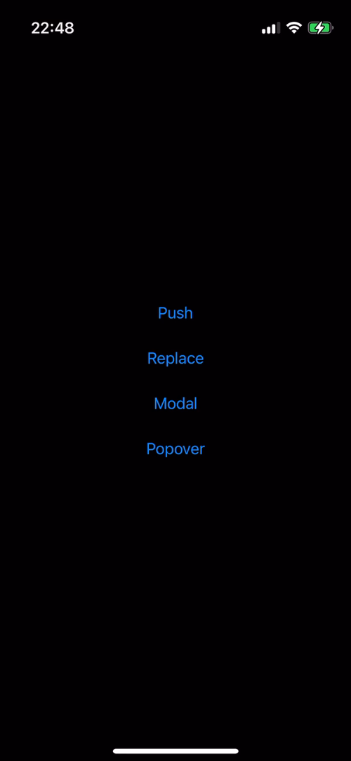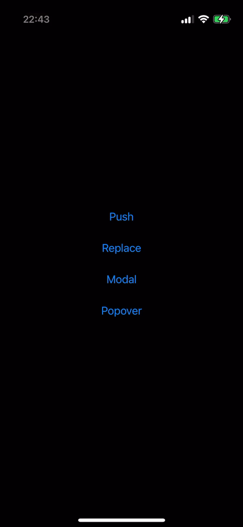 Push과 Replace는 새롭게 Push 방식으로 표시되고, 나머지는 모두 Modal로 표시된다.