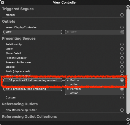 그럼 표면상으론 Segue가 보이지 않지만, Document outline의 가장 아래에서 Segue를 확인할 수 있다.