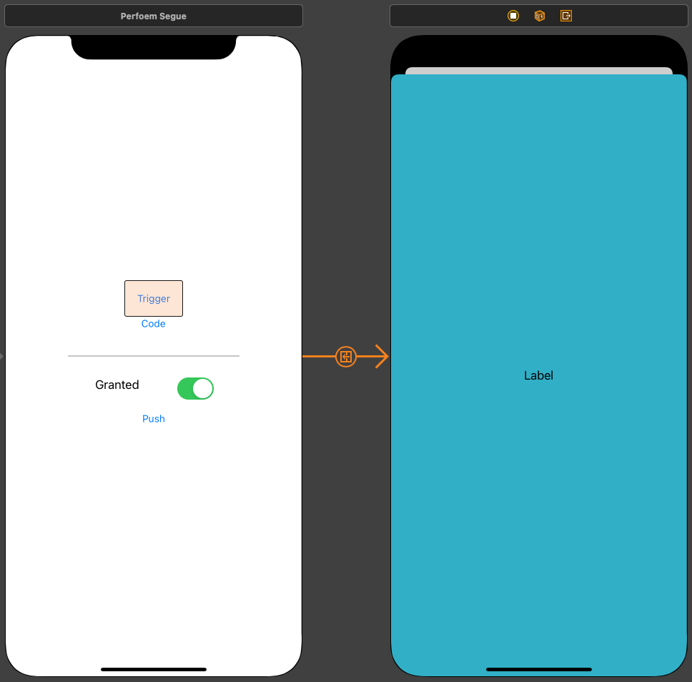 이 방법이 Segue를 실행하는 가장 단순하고 쉬운 방법이다.