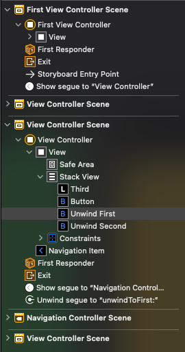 서로 다른 Context에 존재해도 Unwind Segue가 알아서 이를 처리한다.