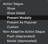 이렇게 연결하면 Present Scene이 Presenting View Controller가 되고,