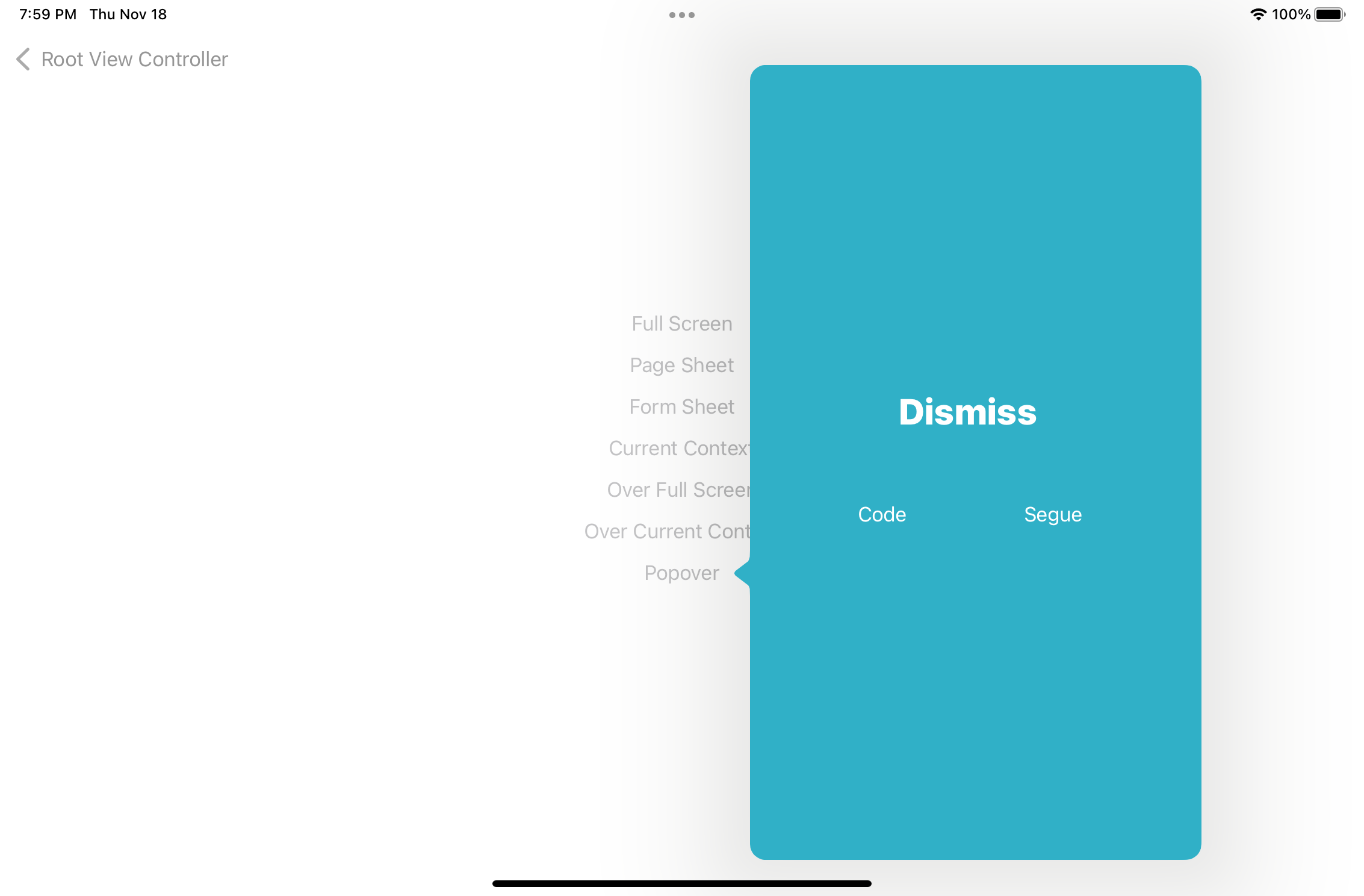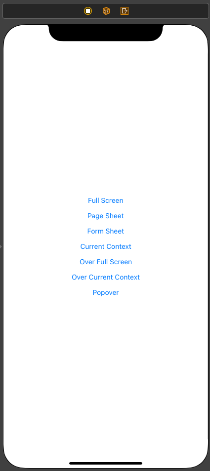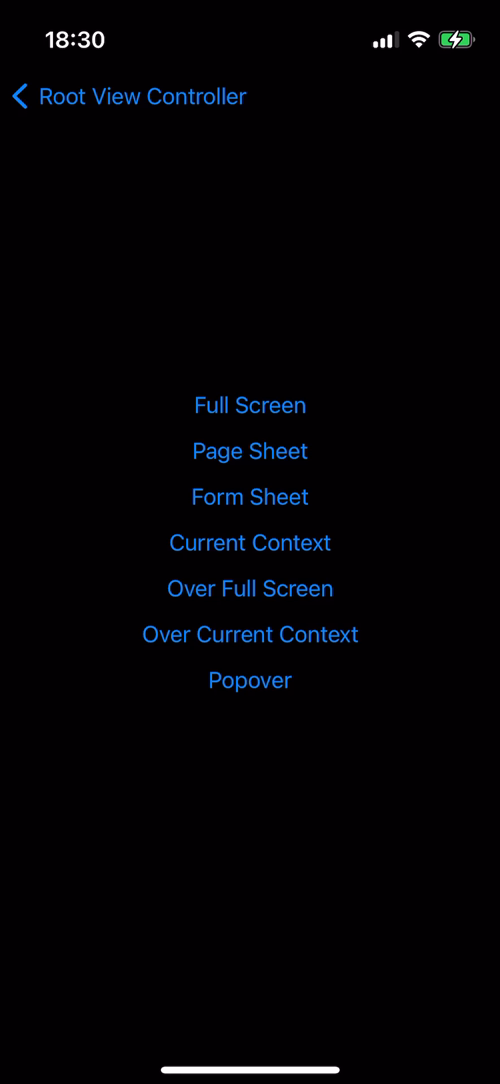 Regular인 경우 기본적으로 Full Screen 방식으로 표시되고, 홈버튼이 없는 기기의 경우 Page Sheet만 정상적으로 동작한다.
