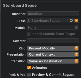 이 둘을 연결하는 Segue는 Current Context로 연결되어있다.