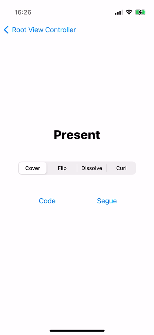 segment에서 선택된 index는 UIModalTrnsitionStyle의 원시 값과 동기화돼 transitionStyle에 저장된다.