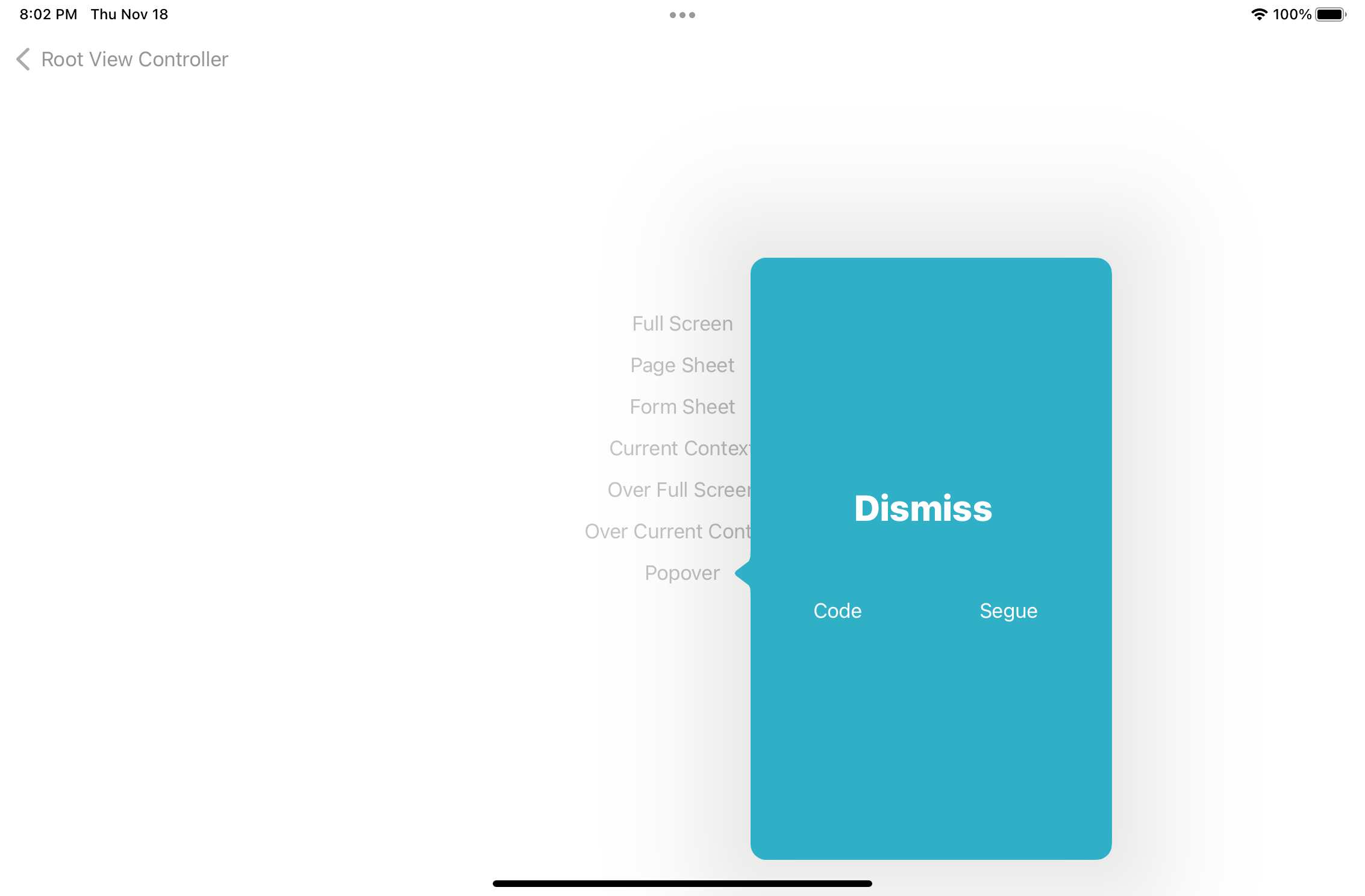Button의 Tag를 사용해 UIModalPresentationStyle을 생성하고, present 메서드를 호출하기 전에 전달해 적용한다.