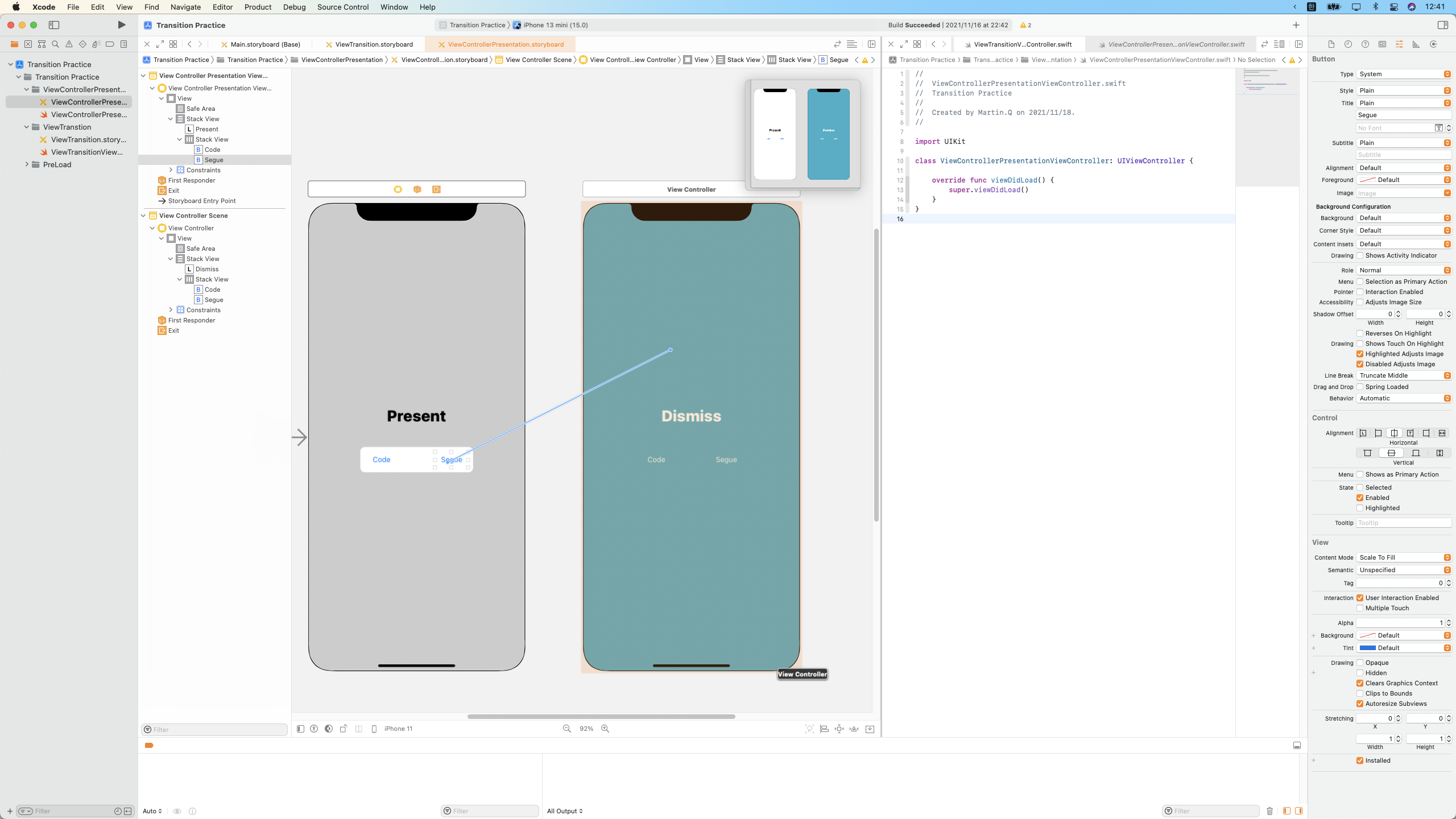 이렇게 연결하면 Present Scene이 Presenting View Controller가 되고,