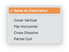 segment에서 선택된 index는 UIModalTrnsitionStyle의 원시 값과 동기화돼 transitionStyle에 저장된다.