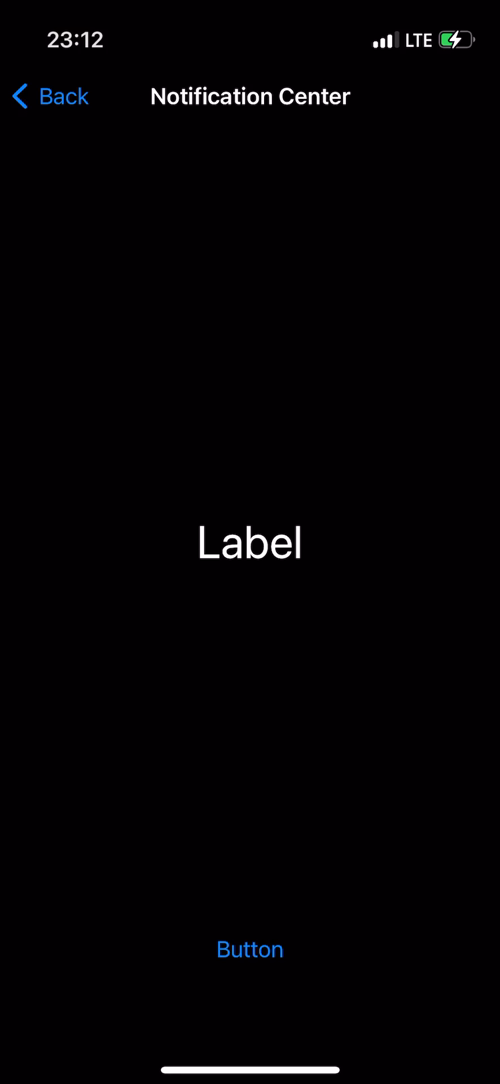 버튼을 누르면 Notification은 전송되지만 이를 처리할 Observer가 존재하지 않기 때문에 반응이 없다.