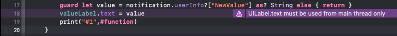 어떤 Thread에서 Notification을 보내더라도 Label의 text 속성은 항상 Main Thread에서 실행되기 때문에 문제는 사라진다.