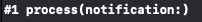 첫 번째 방법에서는 selector를 통해 process 메서드의 파라미터로 Notification을 전달했지만